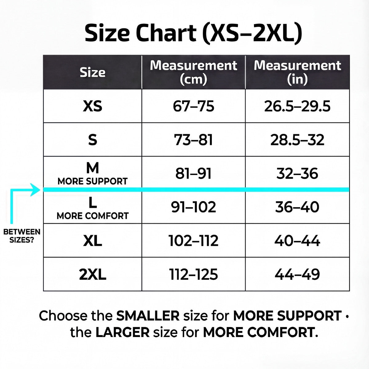 The updated size chart corrects all previous model issues, delivering a more accurate, comfortable fit across all sizes.