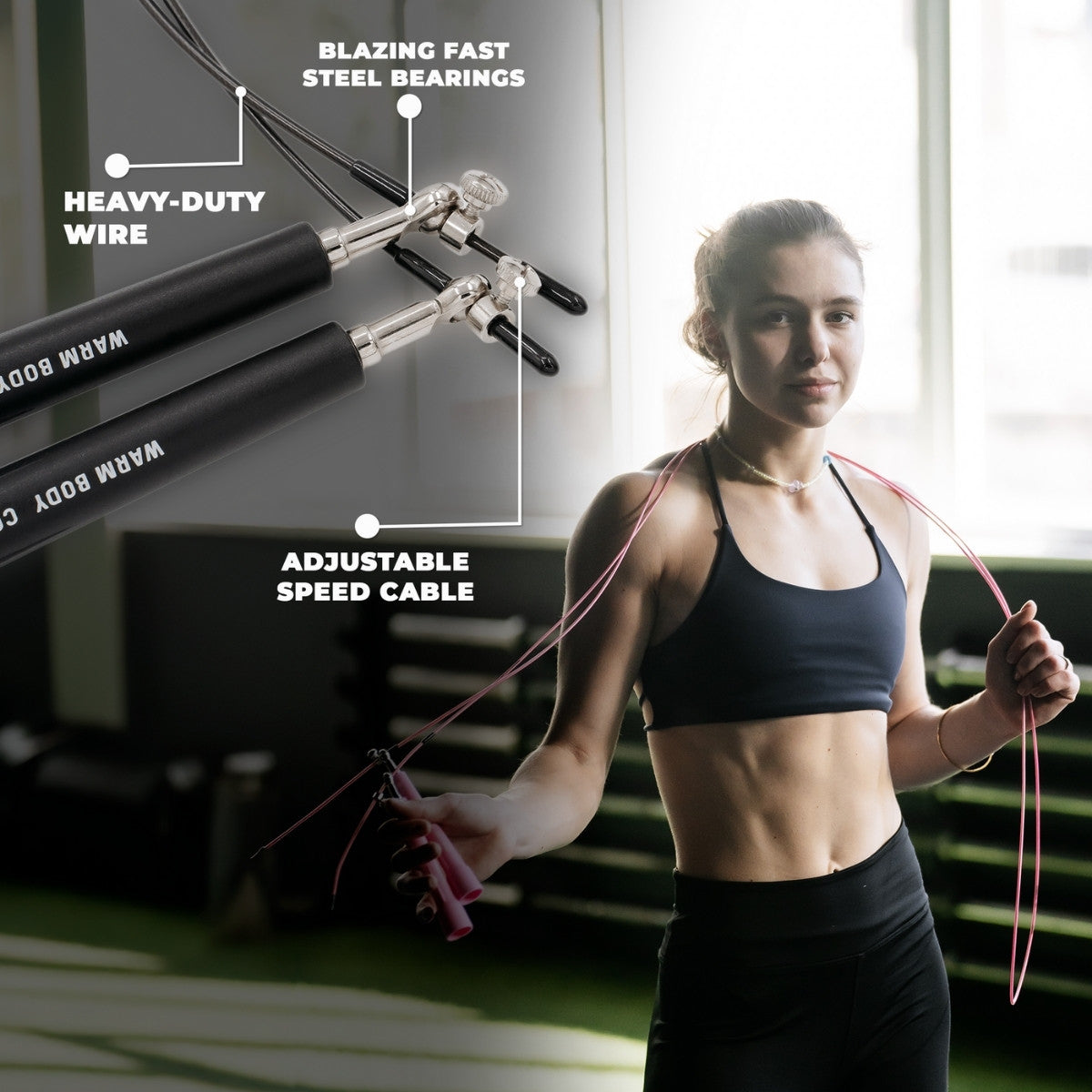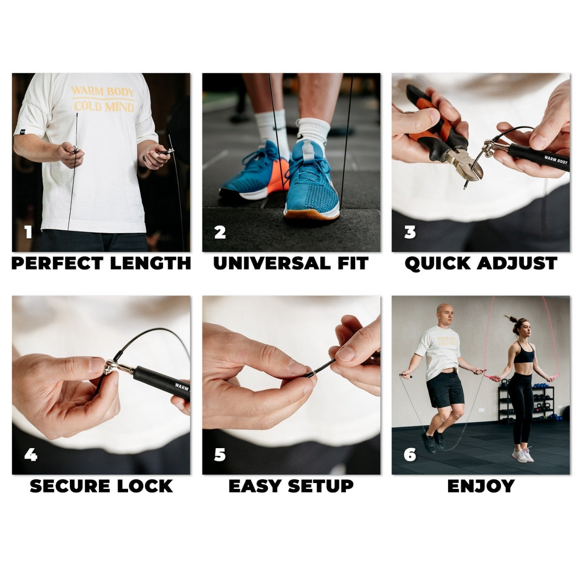 Designed by professionals for athletes of all levels, this adjustable jump rope combines performance, style, and durability. Made with lightweight yet durable materials, it allows smooth and fast rotation for effective cardio and conditioning. The length is fully adjustable to fit any height, making it ideal for both beginners and experienced athletes. Perfect for cross-training, boxing, functional fitness, or general workouts. Available in four vibrant colors — black, silver, pink, and blue — to match your personal style and training intensity.